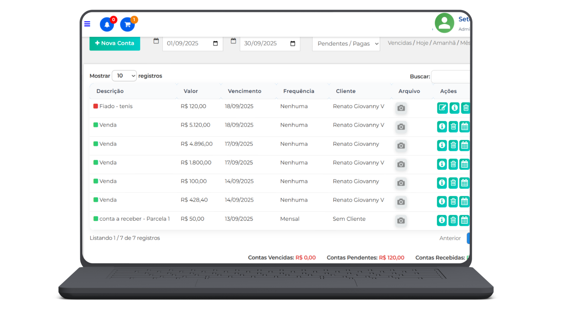 Contas a pagar e receber, fluxo de caixa, emissão de boletos e relatórios.